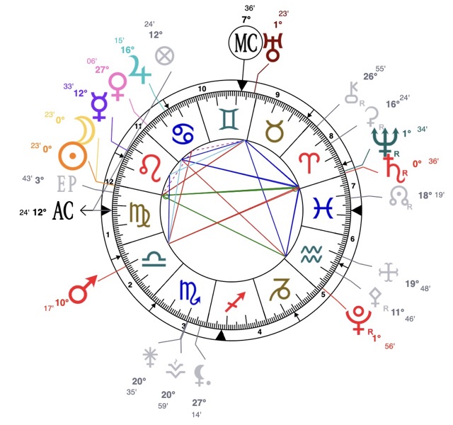 Carte du ciel de la nouvelle lune en Vierge du 23 août